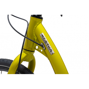 Díky ergonomickým řídítkům KOSTKA FBH 680-50 Al Wings, která byla vyvinuta speciálně pro koloběh, poznáte ten pravý komfort. Konce řídítek jsou uzpůsobeny vašemu zápěstí a přirozenému úchopu, nedochází tak ke zbytečnému namáhání zápěstí. Tvar řídítek také poskytuje dodatečný prostor pro odraz. Silikonová madla tlumí mikrovibrace vznikající při jízdě. Nové polointegrované hlavové složení zajišťuje ještě tužší a přesnější uložení vidlice v rámu.